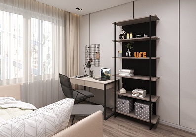 - Шкаф с 2 распашными фасадами, 4 полками ЛДСП и 1 выдвижным ящиком;