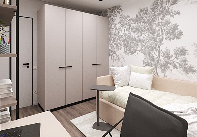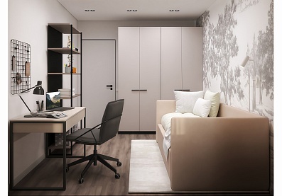 - Фасады шкафа: рамочные, вставка — затемненное стекло;