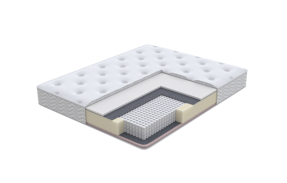Матрас двусторонний, с разной жесткостью: ниже средней/средняя. Позволяет выбирать наиболее комфортные условия для отдыха в зависимости от настроения и самочувствия. В основе матраса – интеллектуальный блок независимых пружин 1000 пружин на спальное место. В сочетании с наполнителями Неолатекс и Эко ППУ он делает спальное место невероятно комфортным и обеспечивает необходимую поддержку каждому участку тела спящего. Чехол матраса выполнен из трикотажной ткани, простеганный на дополнительном слое Ортофом.