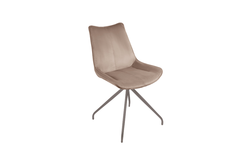 Стул Барса с поворотным механизмом прекрасно впишется в любой интерьер и комнату. Такой стул можно использовать как в качестве обеденного стула, так и в виде рабочего кресла к письменному столу. Обивка из велюра в актуальном бежевом оттенке прекрасно гармонирует с металлическими ножками цвета капучино. Такие стулья украсят современные интерьеры, а также пространства в стиле эклектики.