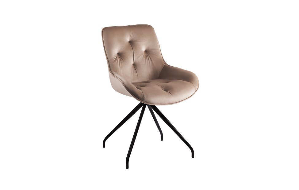 Стул-кресло Сохо с поворотным механизмом прекрасно впишется в любой интерьер и комнату. Такой стул можно использовать как в качестве обеденного стула, так и в виде рабочего кресла к письменному столу.Обивка из велюра в актуальном бежевом оттенке гармонирует с металлическими ножками черного цвета. Такие стулья украсят современные интерьеры, а также пространства в стиле эклектики.