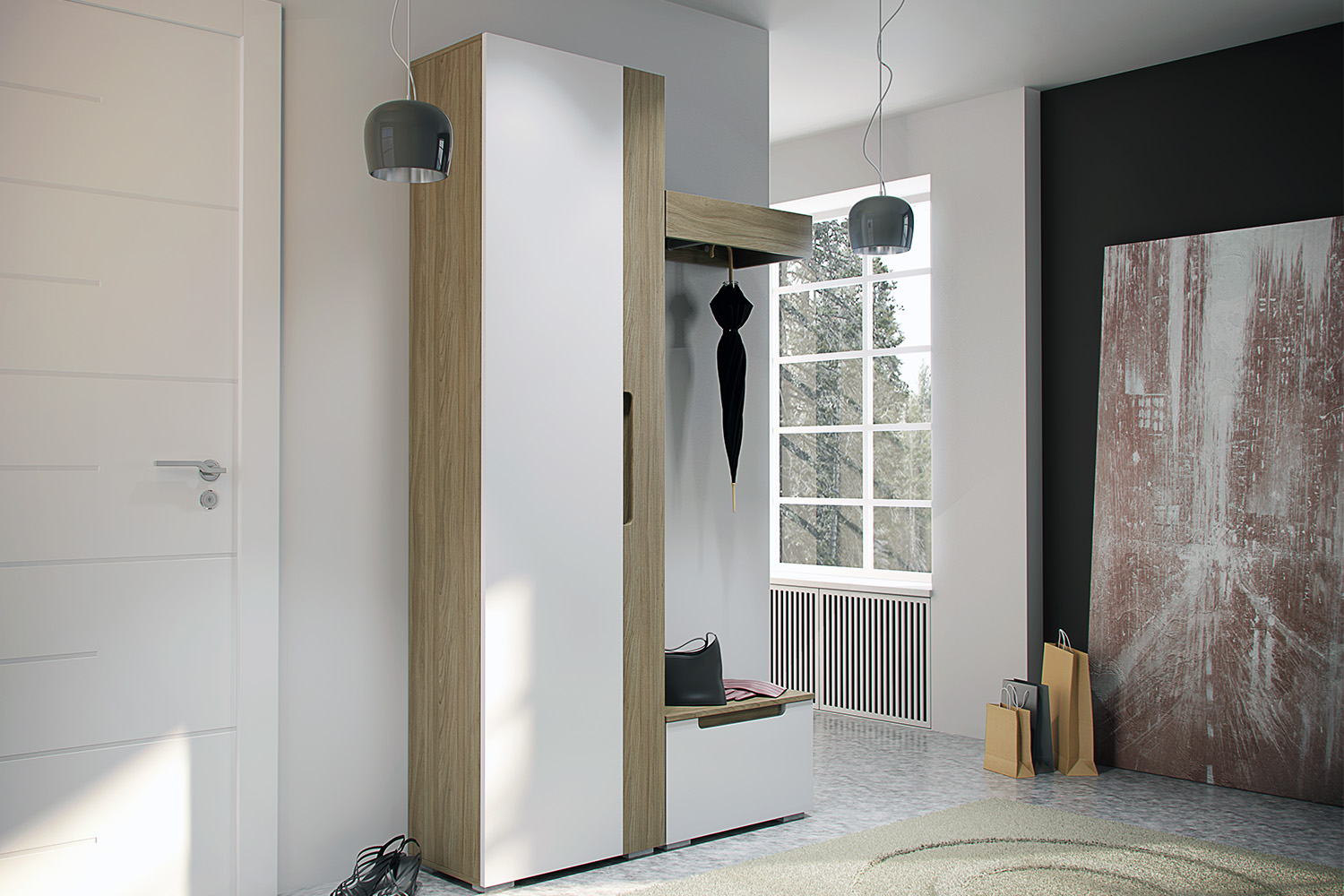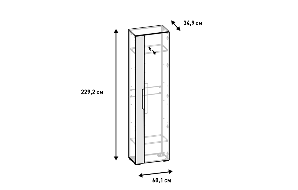– описание: стиль современный, минимализм, назначение для одежды, размер 229.2x60.1x34.9 см, цвет швейцарский вяз, белый.