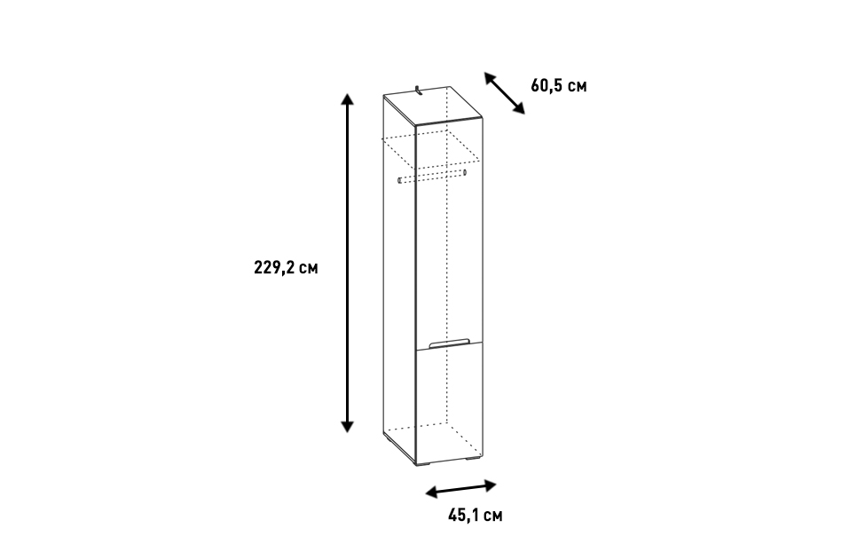 – описание: размер 229.2x45.1x60.5 см, стиль современный, минимализм, назначение для одежды, цвет швейцарский вяз, белый.