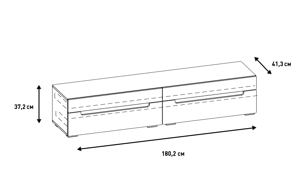 – описание: назначение под тв, стиль современный, минимализм, размер 37.2x180.2x41.3 см, цвет швейцарский вяз, белый.