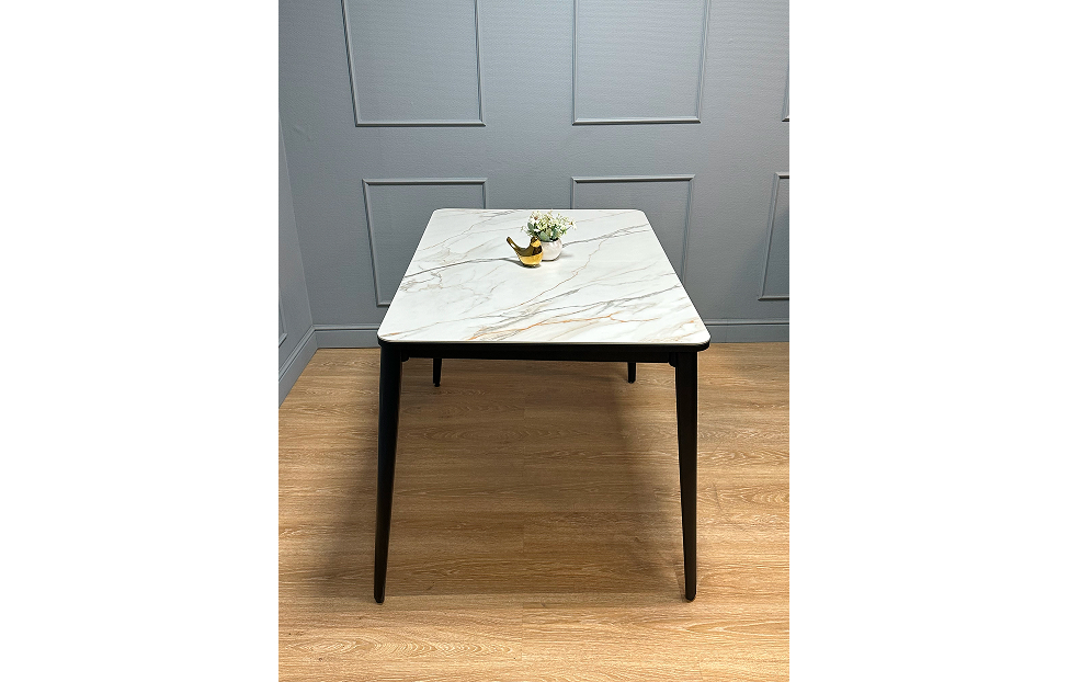 Керамика - наилучший и самый дорогой материал для обеденного стола. Она не портится от влаги, выдерживает температуру до 1000°С. Плотность керамики выше плотности металла и на ней не останутся следы от столовых приборов. Кроме того, это 100% натуральный гипоаллергенный материал в отличие от разного вида пластиков.