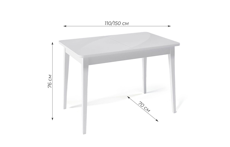 Размер стола компактный и в то же время достаточно вместительный для ежедневного использования 4 человек, по каждой стороне достаточно места чтобы поставить 4 широких стула вокруг стола. Механизм раздвижения со стеклянной вставкой позволяет комфортно посадить еще 2 гостей. Компактный и очень функциональный стол, идеален для использования как на небольшой кухне, так и в качестве уютной обеденной зоны в гостиной.