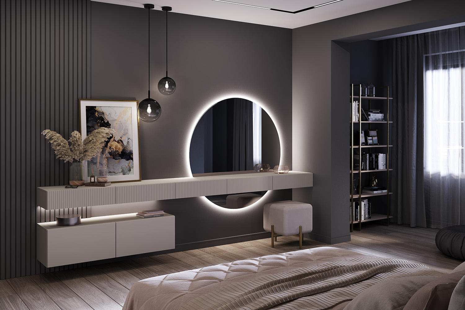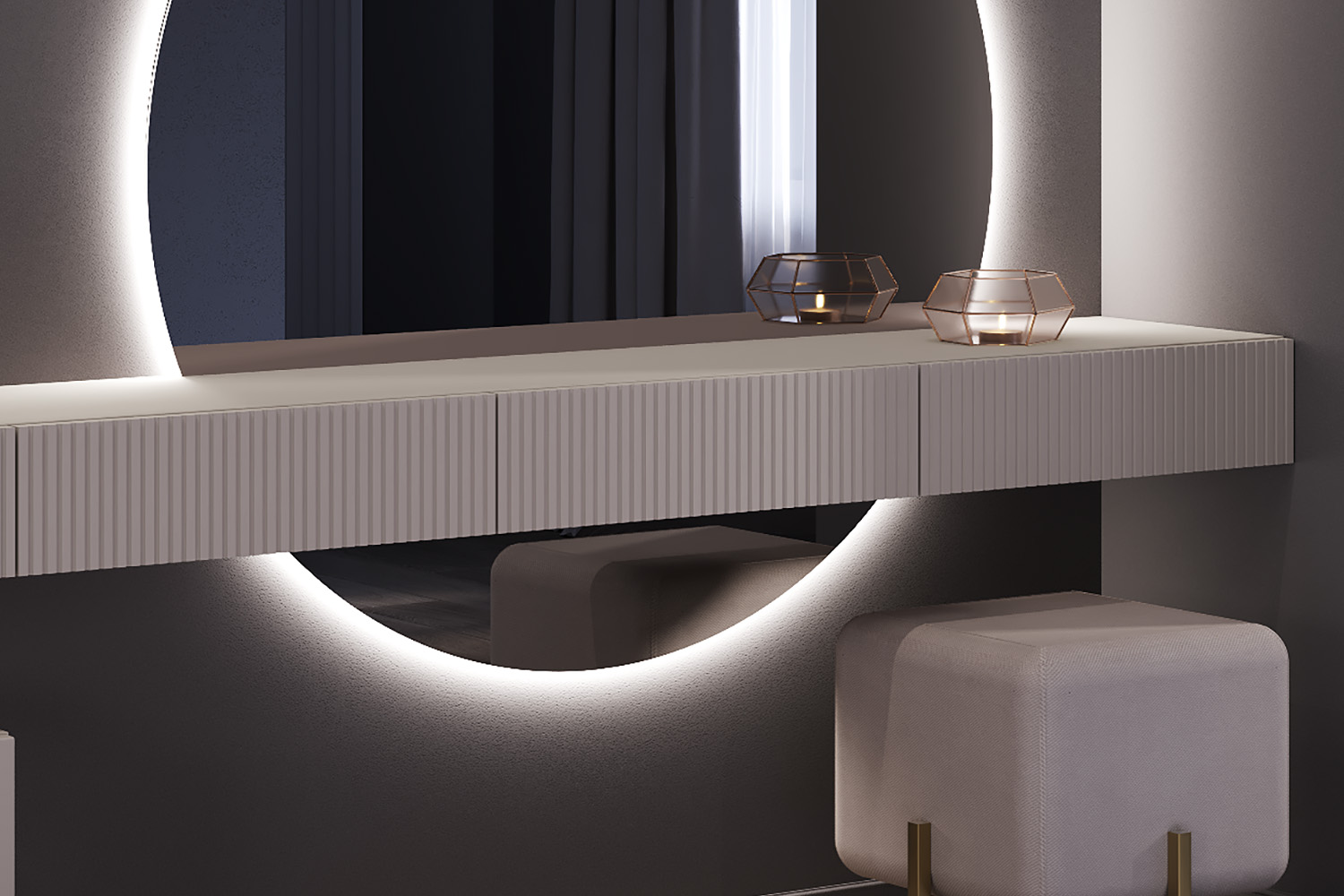 – описание: стиль современный, ар-деко, цвет кашемир серый, размер 16x180.1x37.1 см.